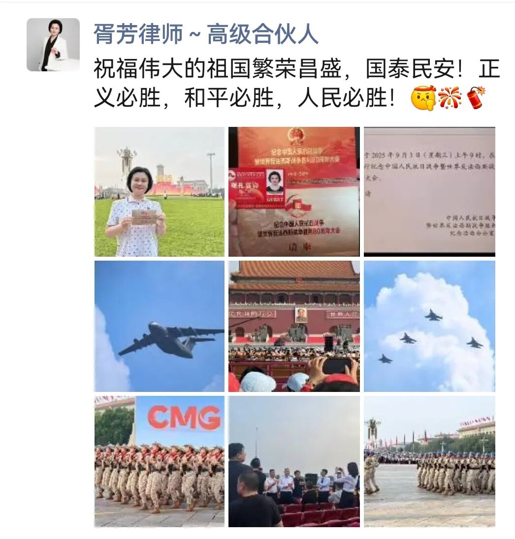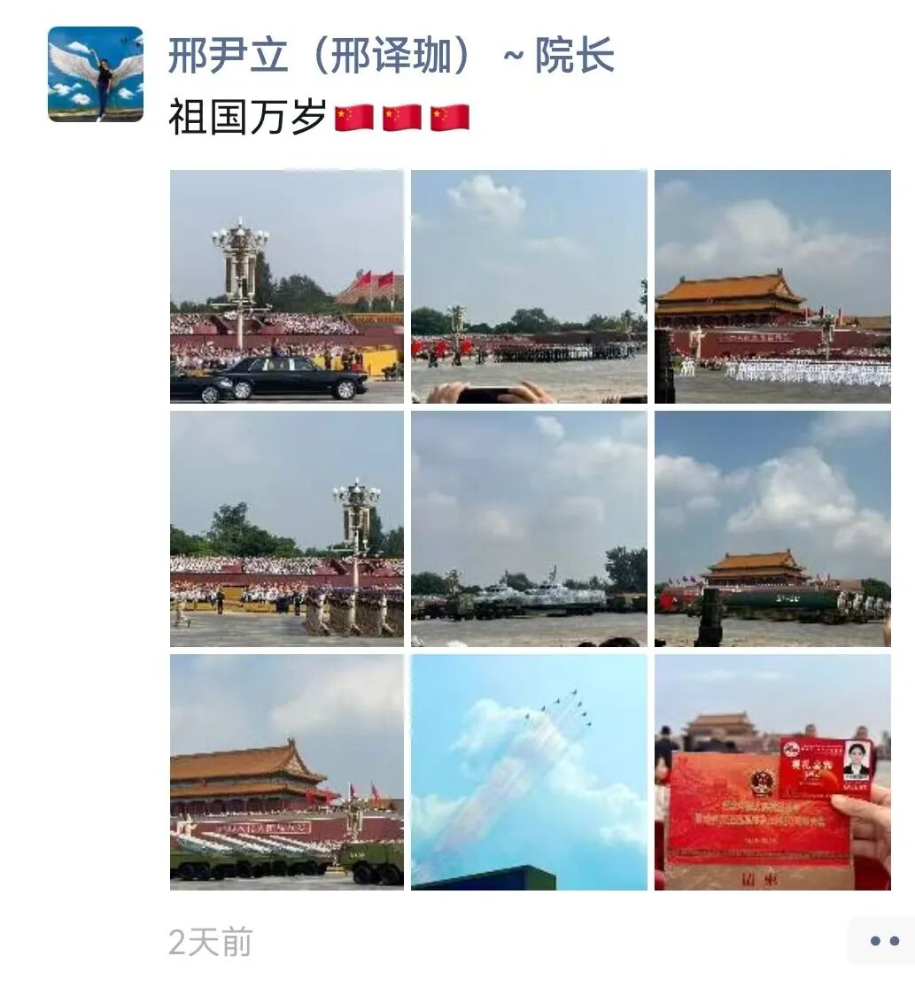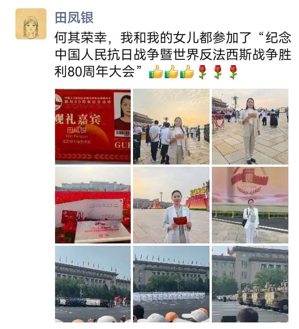 “9月3日的阅兵结束了,但时至今日我仍然沉浸在无比的激动和兴奋之中。上午在天安门广场参观了阅兵的全过程,晚上又又有幸参与到人民大会堂召开的抗战胜利80周年晚会,泪水一次次模糊了双眼,我们这一代人更能够深刻的感受到祖国如今的强盛来之不易,我们要筑牢家国情怀、强化使命担当!祝愿我们的祖国能够永远繁荣昌盛!”——来自安钟岩会长的“新”声。