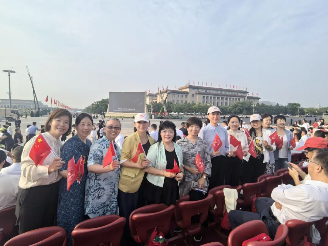 亲临天安门广场现场观礼的北京市女企业家协会会长安钟岩,林巧玲、田凤银、柳静、孟雯、宁剑冰、李琛、施颖秀、沈艳婷、王蕾、于小纳、王倩倩、赵婧、张馨予、郭玲、邢尹立、孟宪芹、胥芳、陈美霞、宋佳等会员。